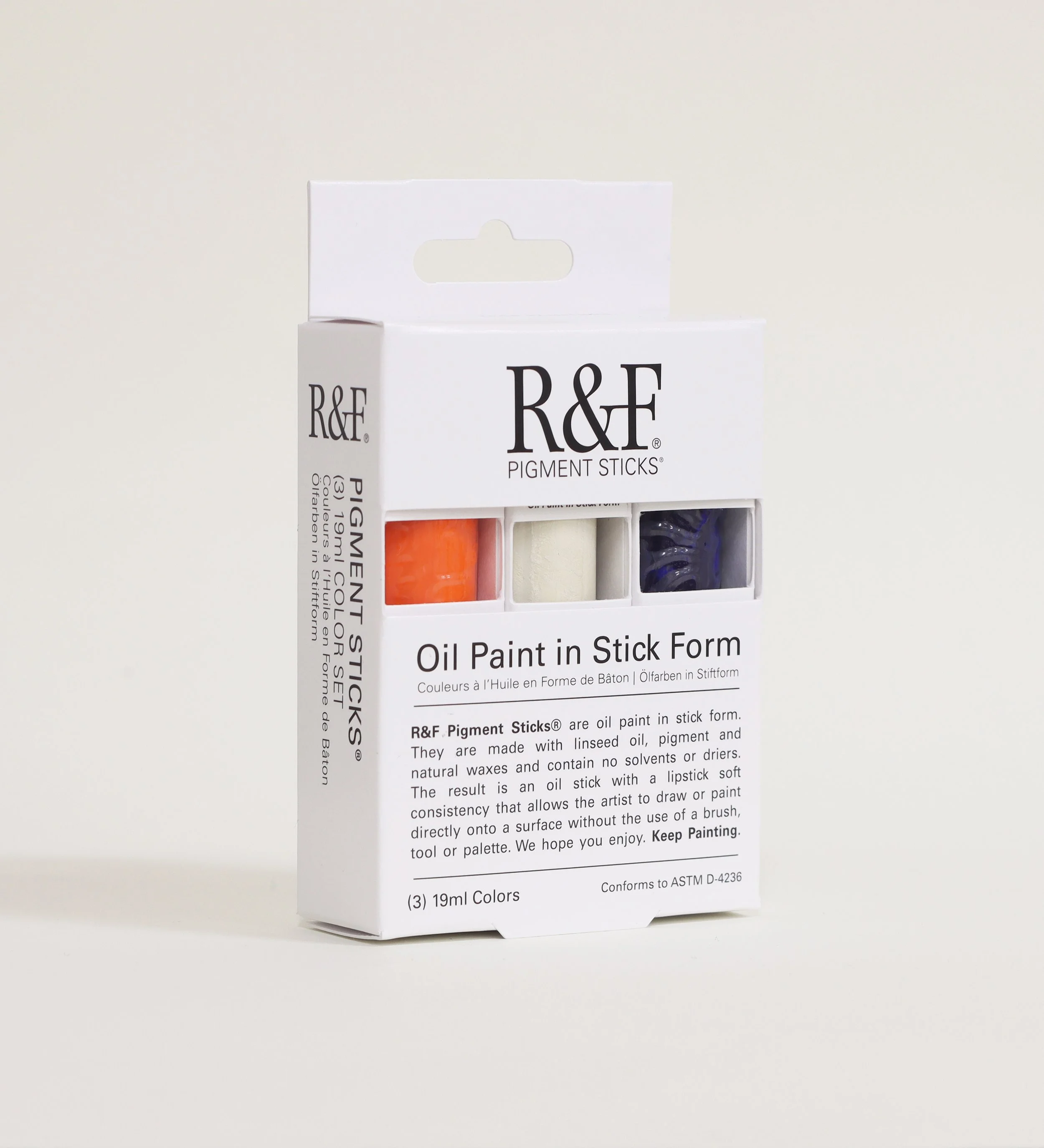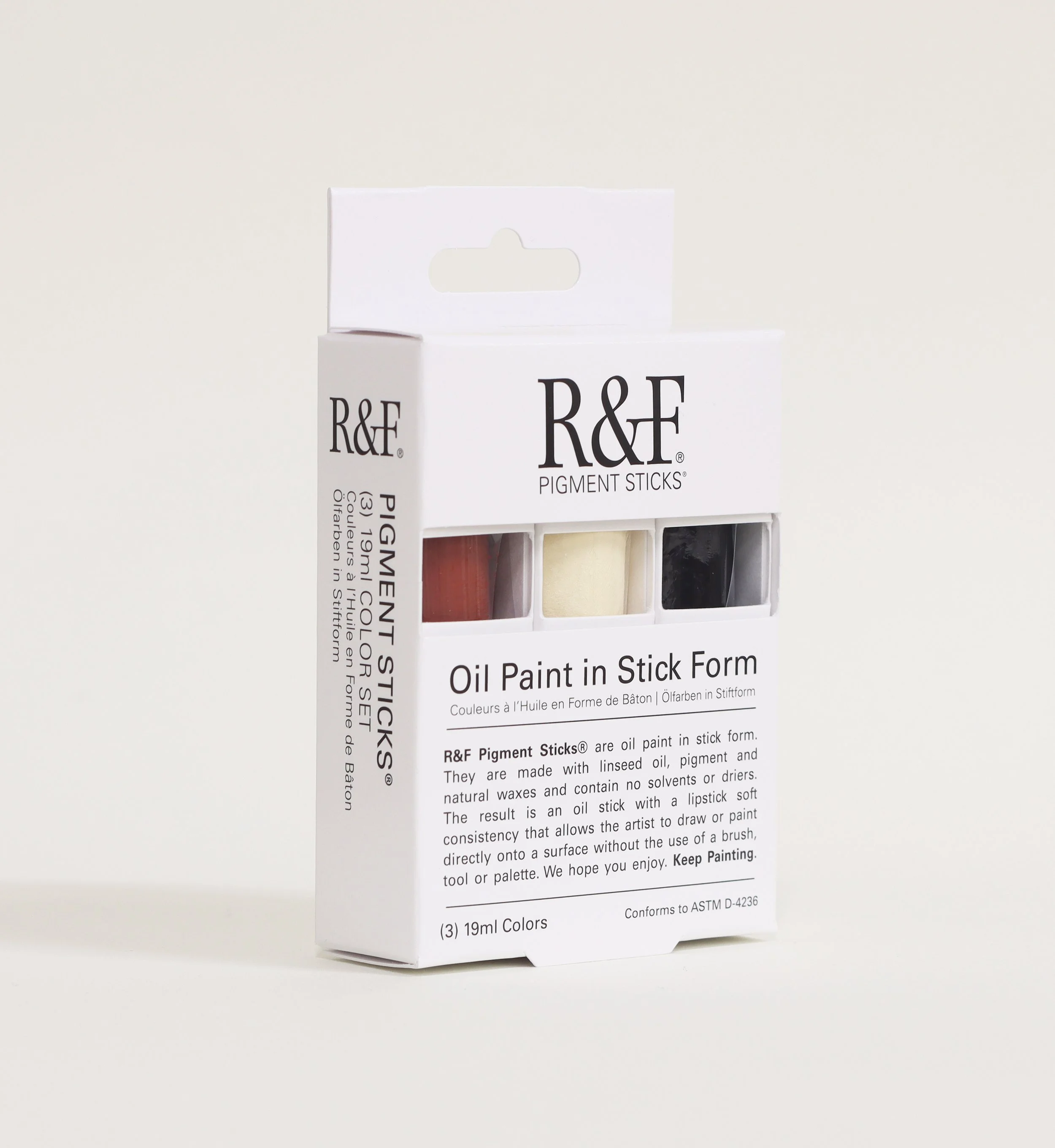 This value-based set of three half-sticks is the perfect introduction to R&F Pigment Sticks®. It features 19 ml. sticks in Ivory Black, Mars Red, and Sienna Yellow Extra Pale.