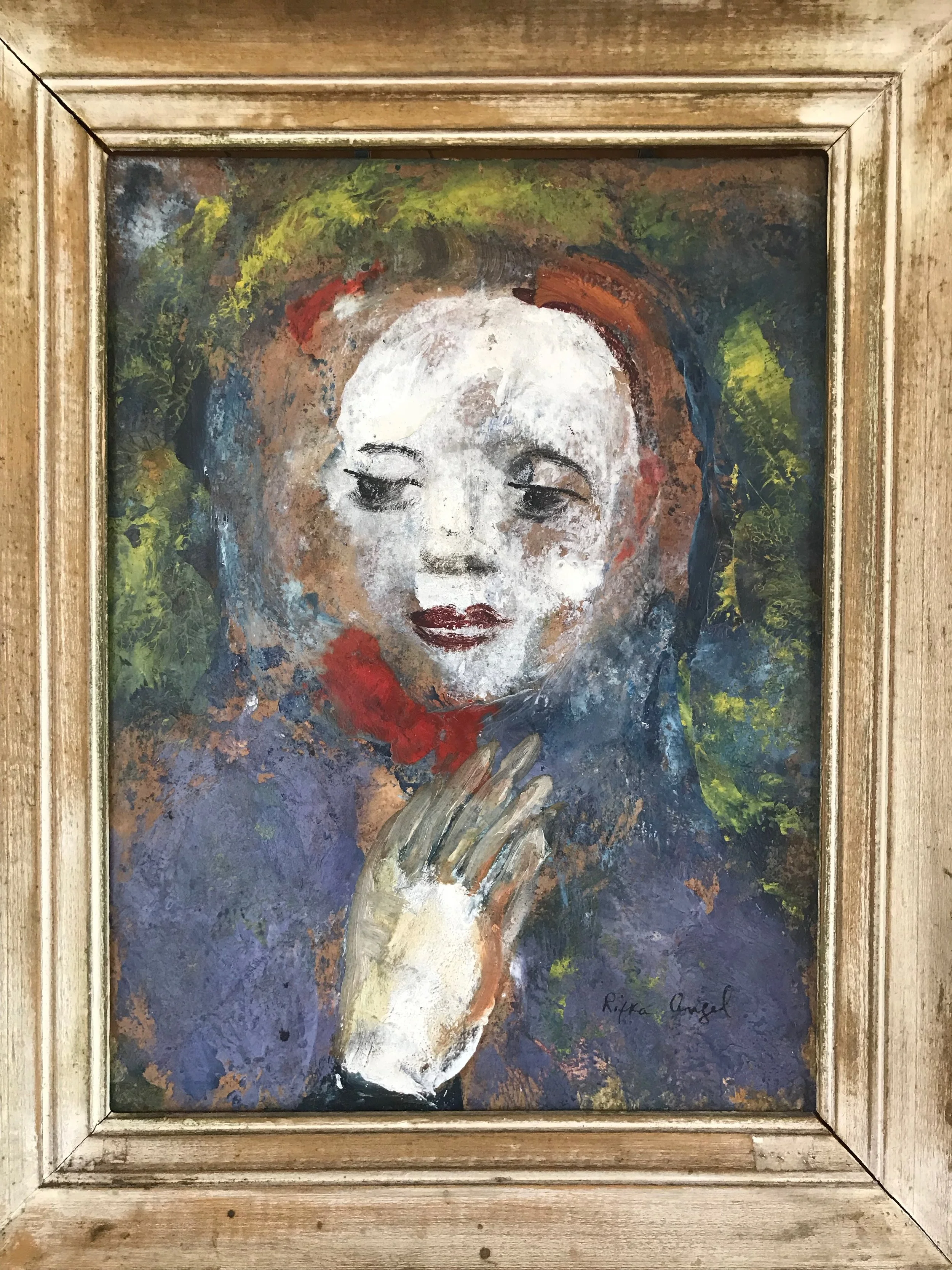 If you’ve been to R&F for a workshop or tour, you might have noticed we have quite an impressive collection of paintings. This piece by artist Rifka Angel, Sonja or Remembering Dostoyevsky’s Literature, 13” x 10”, encaustic on panel, date unknown, is one of our oldest. Though Karl Zerbe, the German painter who served as chair for the Boston Museum School’s painting department in the 1930s and 40s is widely credited for his work with encaustic, Rifka Angel preceded him by several years. Angel began working with encaustic in the early 1930s and continued doing so until her death in 1988.