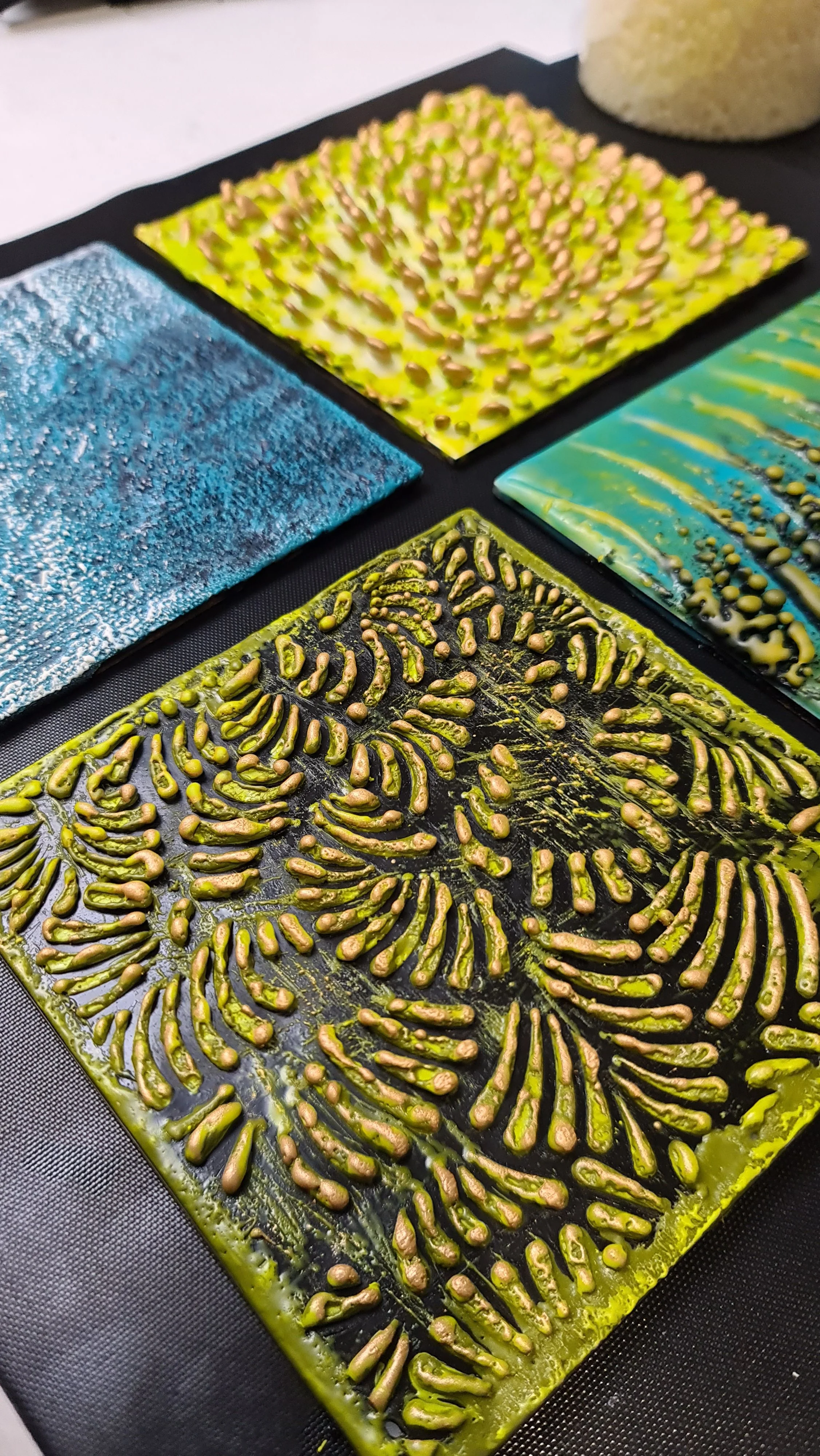 I’m in love with texture, and with accretion in particular, because it allows me to explore the layering of materials, the depth, and the tactile possibilities that emerge from building something gradually. My background in acrylics and working with texture pastes laid the foundation for this fascination, informing how materials can interact and respond to different techniques.