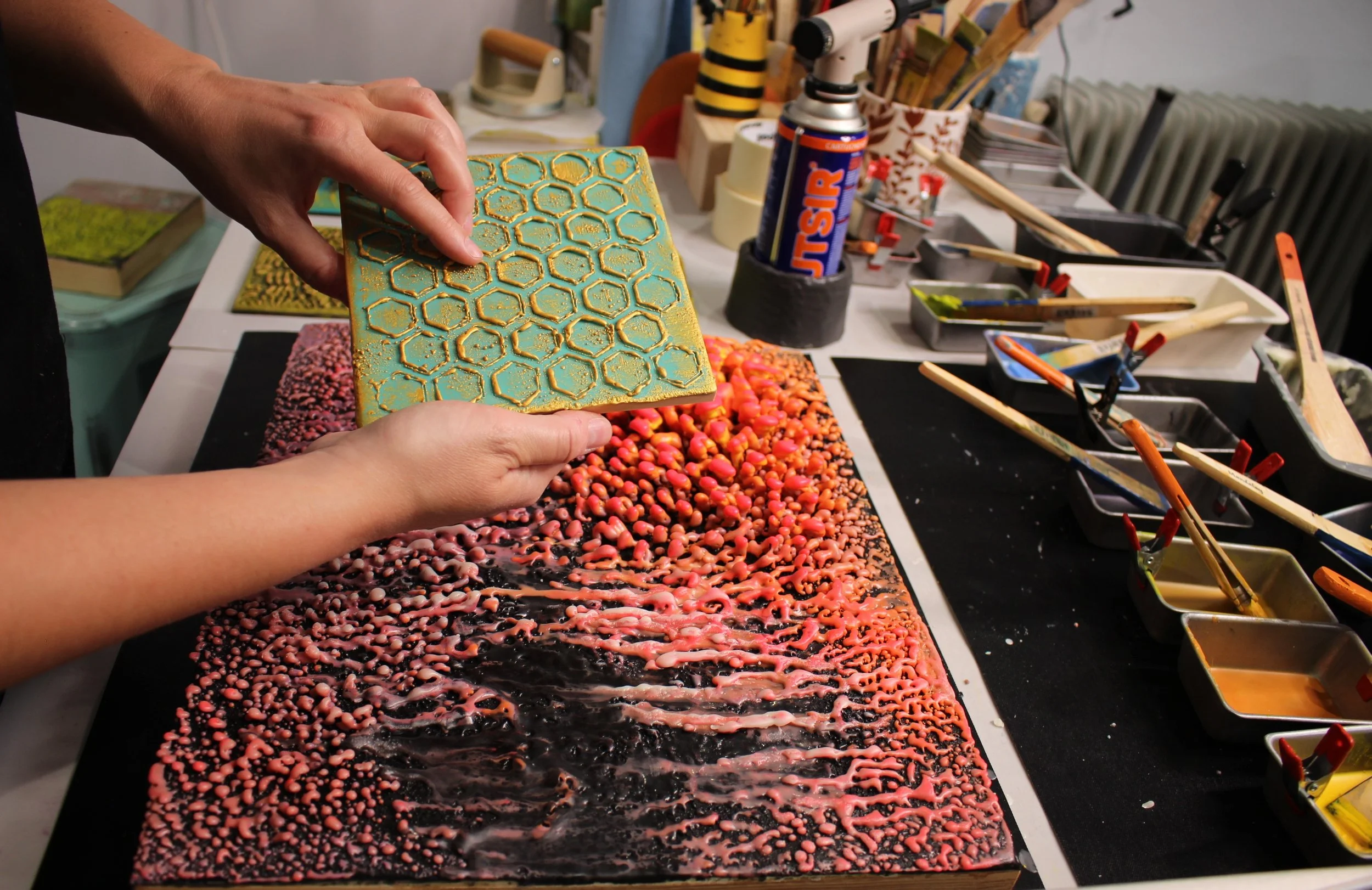 This approach encourages you to let go of the impulse towards perfectionism. Rather than trying to control every outcome, you become an observer —responding to what appears on the surface. It’s a powerful way to loosen up, especially if you’re used to more controlled painting methods.