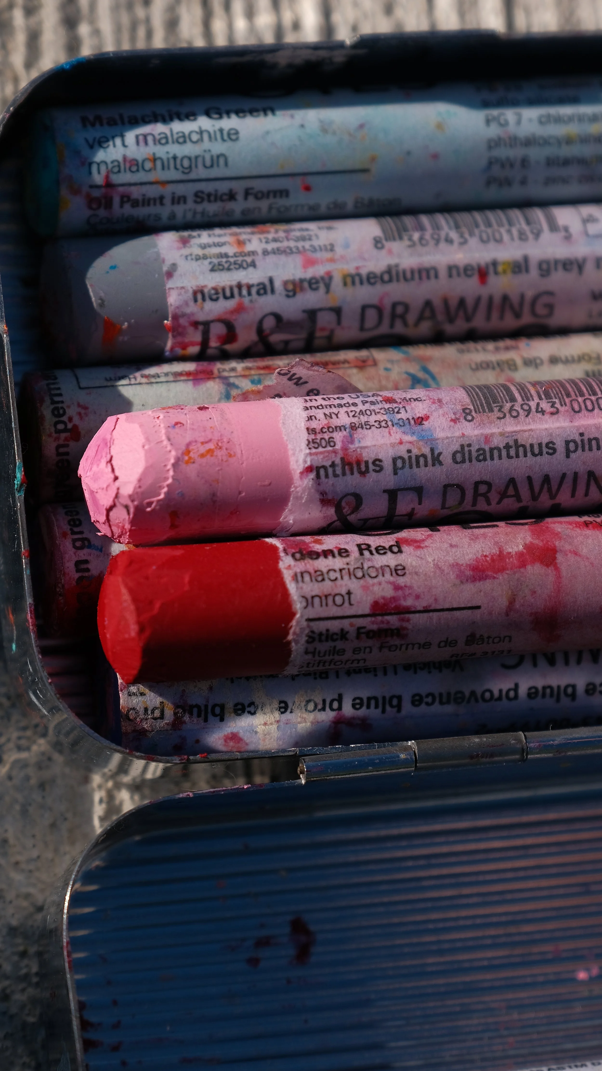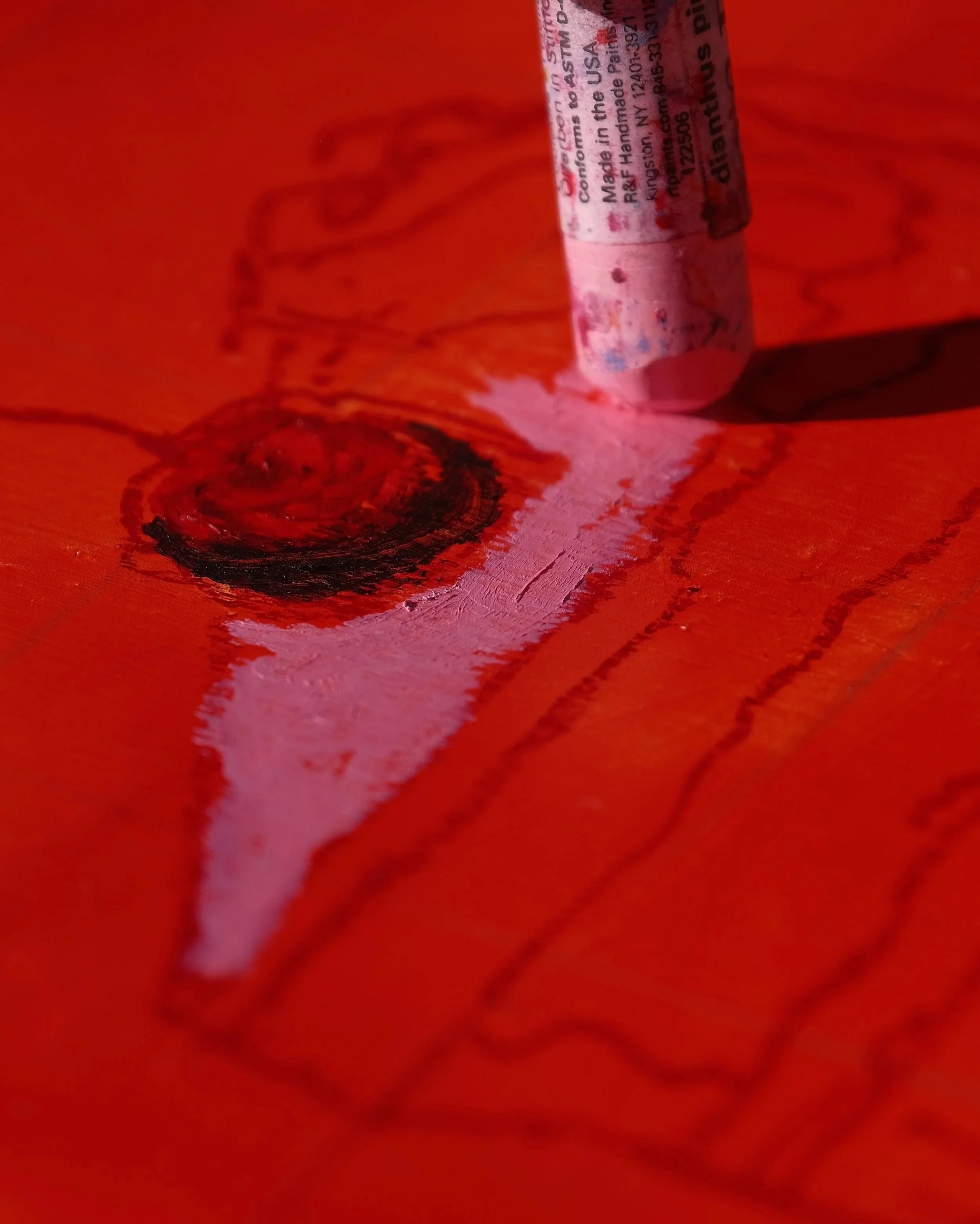 I bought my first four R&F Pigment Sticks® in 2024 with money saved from an art show in Seattle, but I only started using them in 2025. At first, I used them just for backgrounds, but I slowly got more creative. Now they’re part of my whole process.