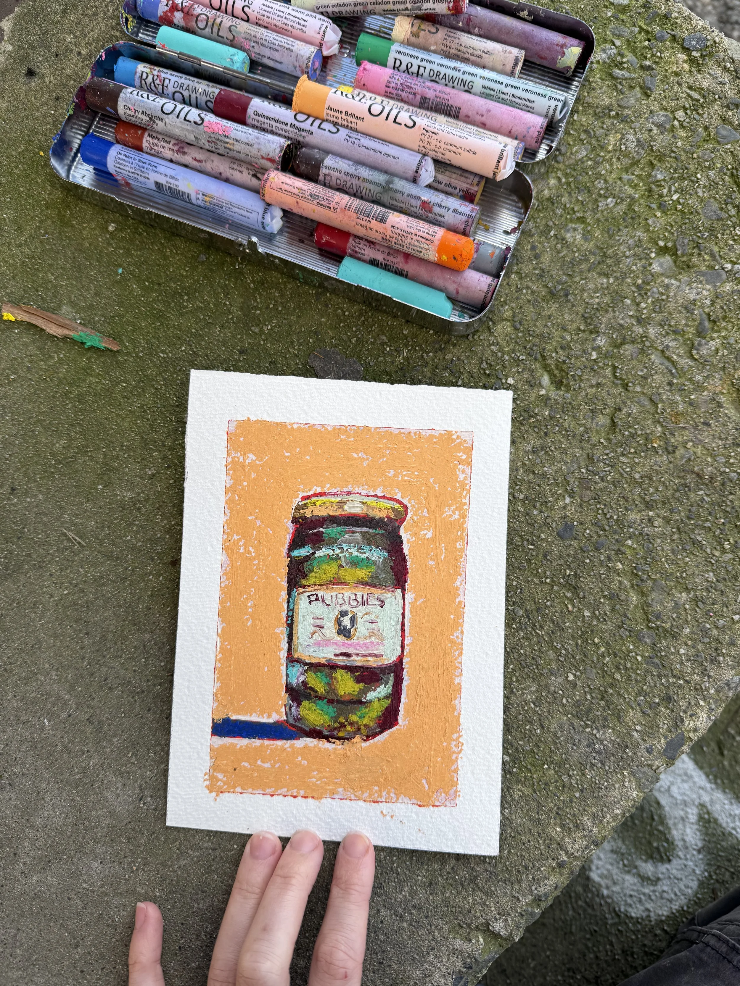 My favourite studio days start with a swim. Then I make my way to the studio, drop off my things, and walk to a nearby café. I’ll sit there for a bit answering emails and planning out paintings on Procreate before heading back to paint. On sunny days I’ll bring my Drawing Oils™ outside. There’s something I love about painting with texture in the sunlight and watching how it interacts with all that buttery pigmentation.
