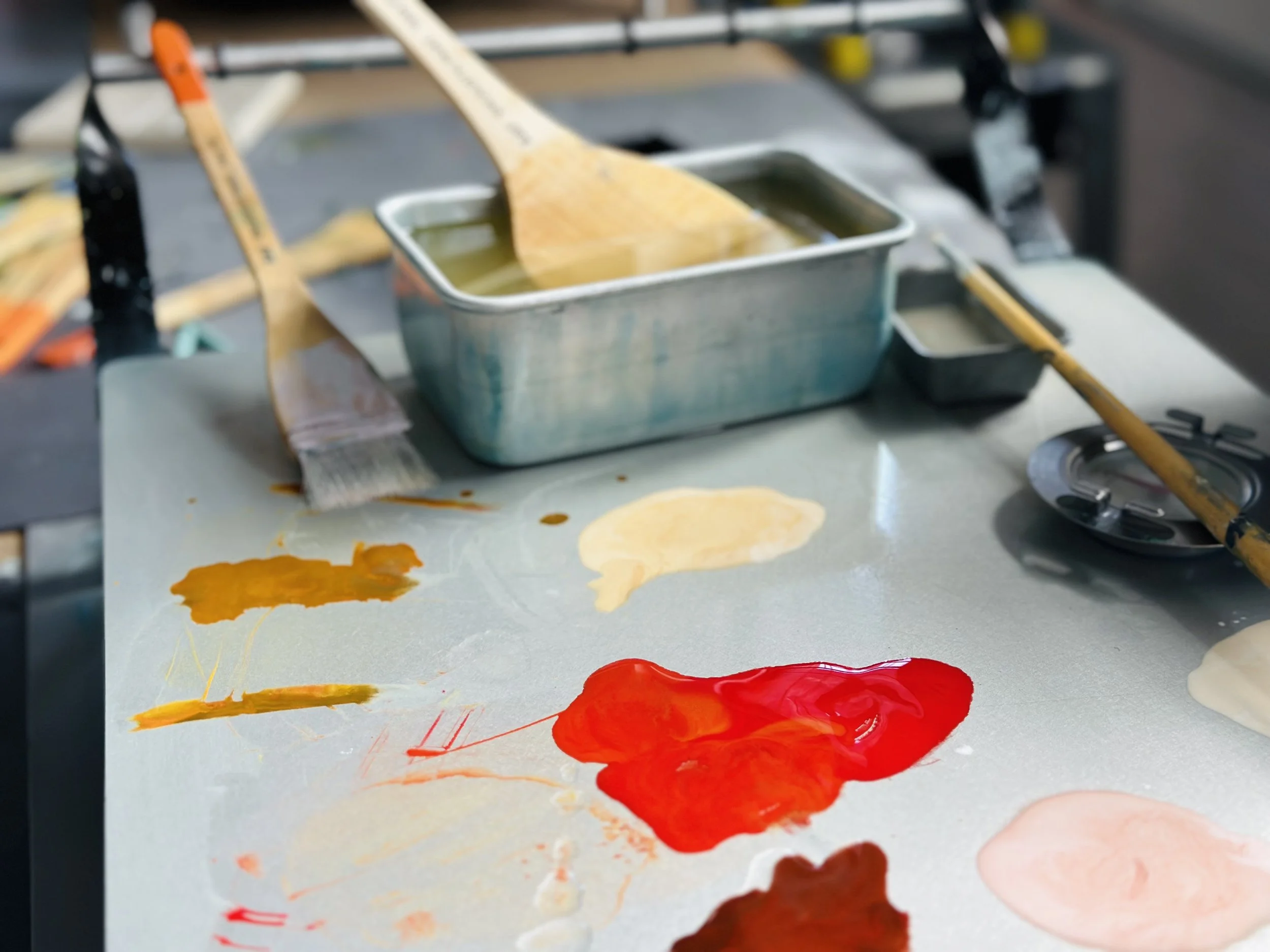 Through playful, intuitive exercises, we’ll step out of our comfort zones to refine our unique visual language. Guided by reflection and open experimentation, you’ll explore the full potential of your work, enhancing its message and depth. Using shellac, pigments, and a range of water- and oil-based media, we’ll create layered, personal pieces — always preserving the luminous translucency of encaustic.