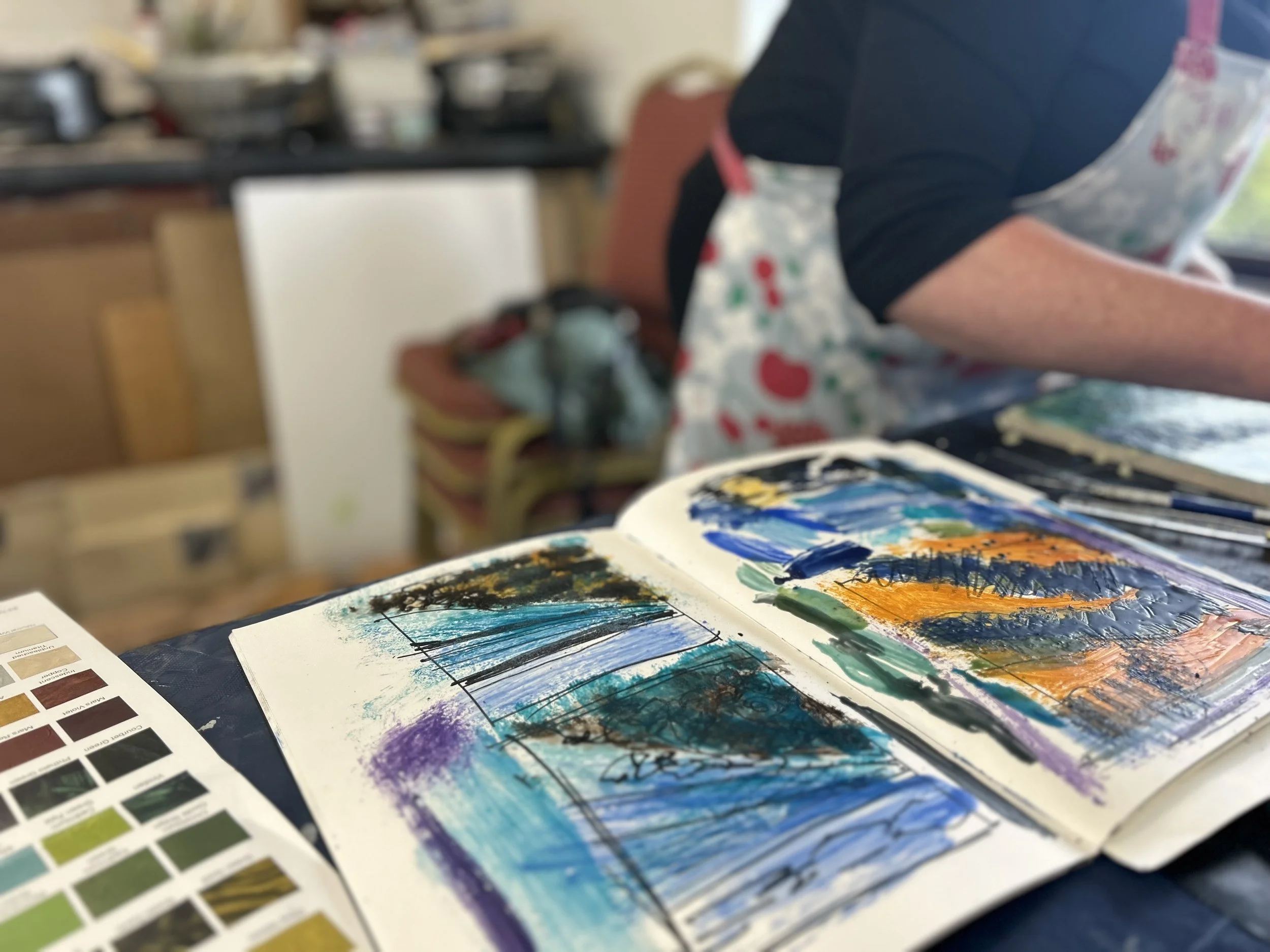 Drawing inspiration from the breathtaking landscape of the west coast of Ireland by mimicking the forces that shape landscapes — erosion, deposition, and weathering. Participants will learn to build up, scrape back, heat, cool, score, and layer wax. These physical processes, inspired by the natural world, will reveal records and traces, creating highly tactile surfaces that hold a history of their own. Explore shape, line, value, edges, saturation, temperature, and texture as you create depth, dimension, and balance.
